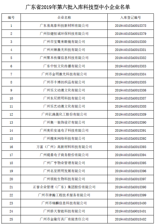 附件:廣東省2019年第六批入庫科技型中小企業(yè)名單